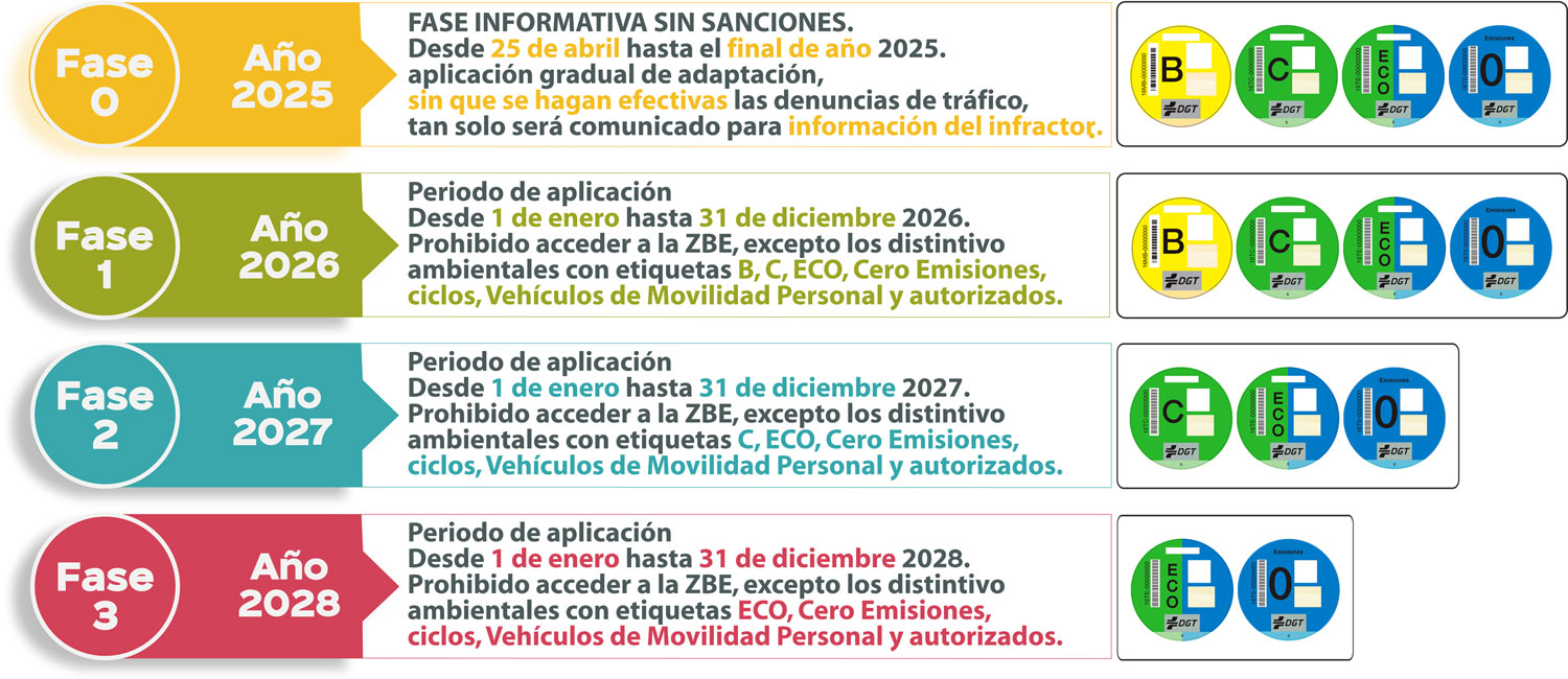 - Fase 0 - Año 2025. Periodo: del 25 de abril al 31 de diciembre. Fase informativa sin sanciones: se notificará a los conductores el acceso indebido sin imponer sanciones, con el fin de sensibilizar y preparar a la población.
